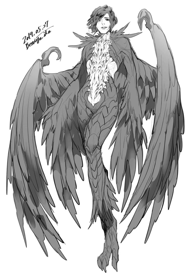 [indent] Аэлы – редкий и тяжело идущий на контакт вид шейдов. Обычно это разумные создания, по телосложению напоминающие людей, но всегда покрыты почти целиком перьями, имеют птицеподобные руки и ноги с острыми когтями, а также острые зубы, множество глаз по всему телу, от 1 до 4 пар крыльев и нимб. Живут до 200 лет. Сильны и выносливы, способны летать. В особо запущенных случаях, когда аэл утрачивает разум, деградируют и превращаются постепенно бесформенное сплетение из множества крыльев, глаз и нимбов. Размеры варьируются: большинство особей около 1,5 м, но некоторые достигают и 3 м. По умолчанию владеют ясновидением, пассивное умение – сильный нагрев собственного тела и выброс энергии при стрессовой ситуации (см. сверхновую выше). По своей природе одиночки. Плотоядны, особенно привлекает запах свежей крови. Предпочитают охотиться на своей территории и не пересекаться без необходимости с родичами и уж тем более чужими. Разумные аэлы в общении обычно не проявляют агрессию первыми. Крайне редко пересекают Завесу.